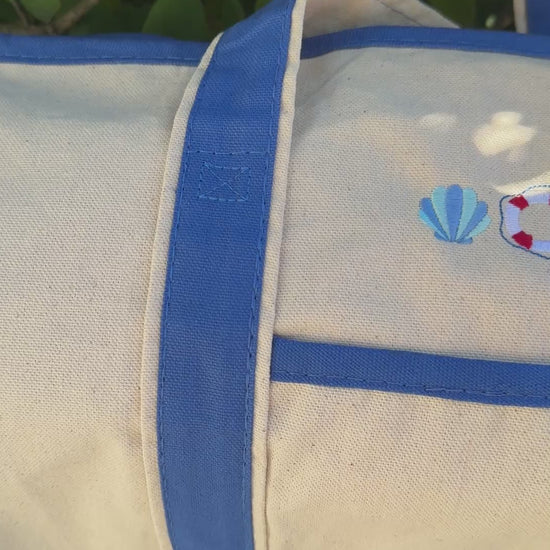 Embroidered Large Boat Tote Canvas Bag - Dark Royal Blue - Coastal Chic Design