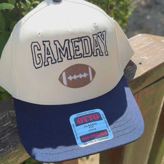 Embroidered Game Day Hat with Football - Baseball Cap 5 Panel